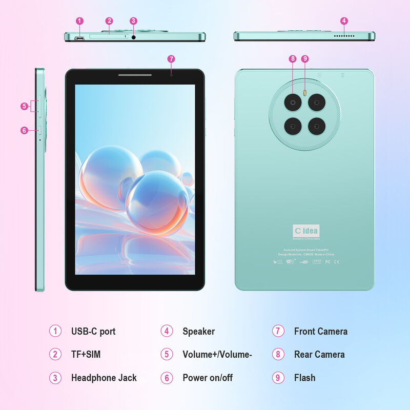 C Idea 9 Inch Android 16 Tablet 8GB RAM 512GB ROM Modello CM936